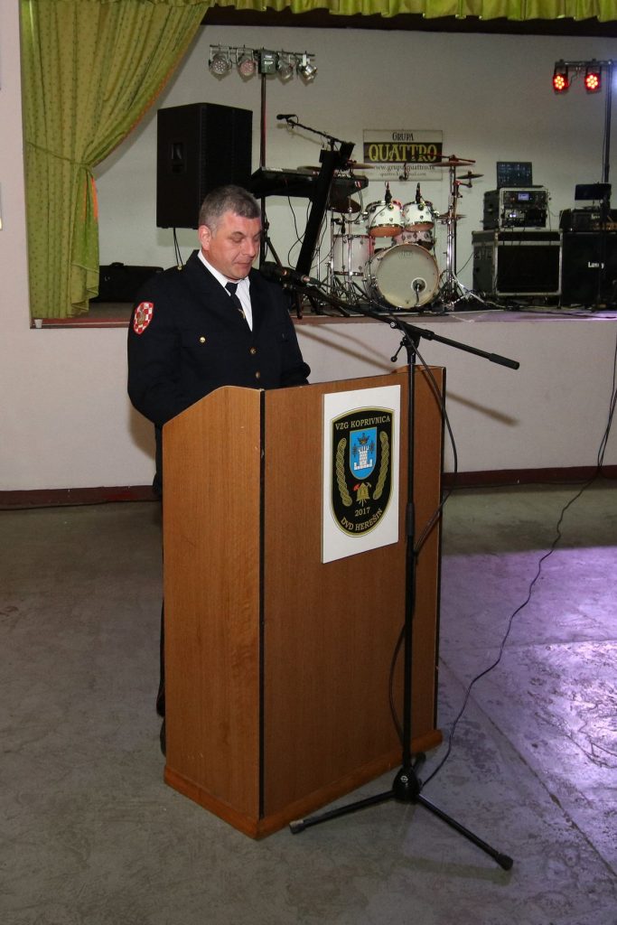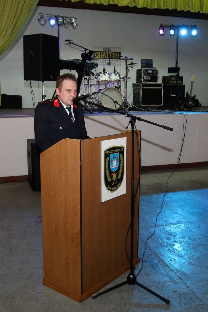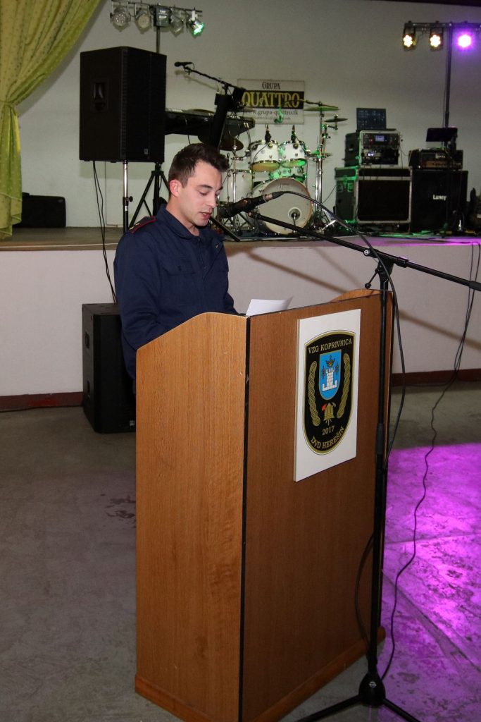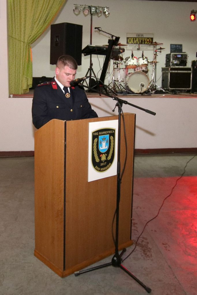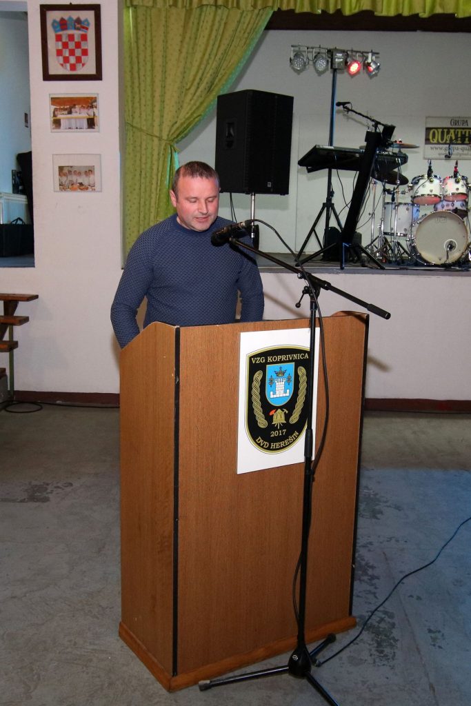 Svima nazočnima prigodnim riječima su se obratili uvaženi gosti, vatrogasni inspektor Stjepan Lončar, predsjednik VZG-a Koprivnice Ivan Golubić te zamjenica gradonačelnika Melita Samoborec. Svi redom, govornici su veoma pohvalno govorili o radu članova najmlađeg dobrovoljnog vatrogasnog društva u sastavu VZG-a Koprivnice. U svojim govorima dotaknuli su se novog Zakona o vatrogastvu, industrijskih dobrovoljnih vatrogasnih društava, budućnosti dobrovoljnog vatrogastva, financiranja te nabavi opreme i 5 kombi vozila. Veoma emotivan bio je govor zamjenice gradonačelnika Melite Samoborec, koja je između ostalog rekla  kako zaista možemo svi zajedno biti sretni što imamo toliko kvalitetnih vatrogasnih društava na našem području. To znači da mnogo ljudi odvaja dio svojeg slobodnog vremena kako bi služili i pomagali drugima u nevolji, ako do iste dođe. Isto tako, izuzetno sam ponosna što ste mi prije nekoliko godina ukazali čast da postanem dio vas, odnosno kuma vašeg Dobrovoljnog vatrogasnog društva Herešin, na što sam izuzetno ponosna i hvala vam na tome“.
